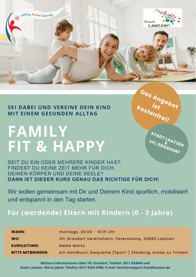 Infos gibt es in der der Geschäftsstelle des VfL Grasdorf oder bei der Stadt Laatzen, Maria Jakob, 0511 8205-5908, familiensupport.hub@laatzen.de