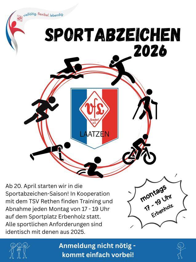 Die Sportabzeichenabnahme findet in Kooperation mit dem TSV Rethen immer montags von 17 - 19 Uhr auf dem Sportplatz Erbenholz statt. Eine Anmeldung ist nicht nötig, kommt einfach vorbei!