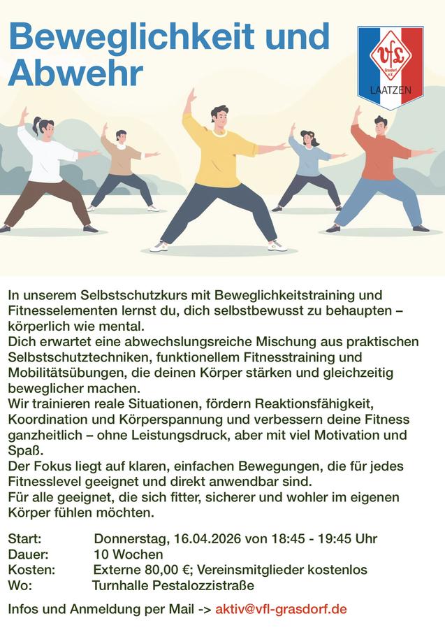 Infos und Anmeldung per Mail -> aktiv@vfl-grasdorf.de