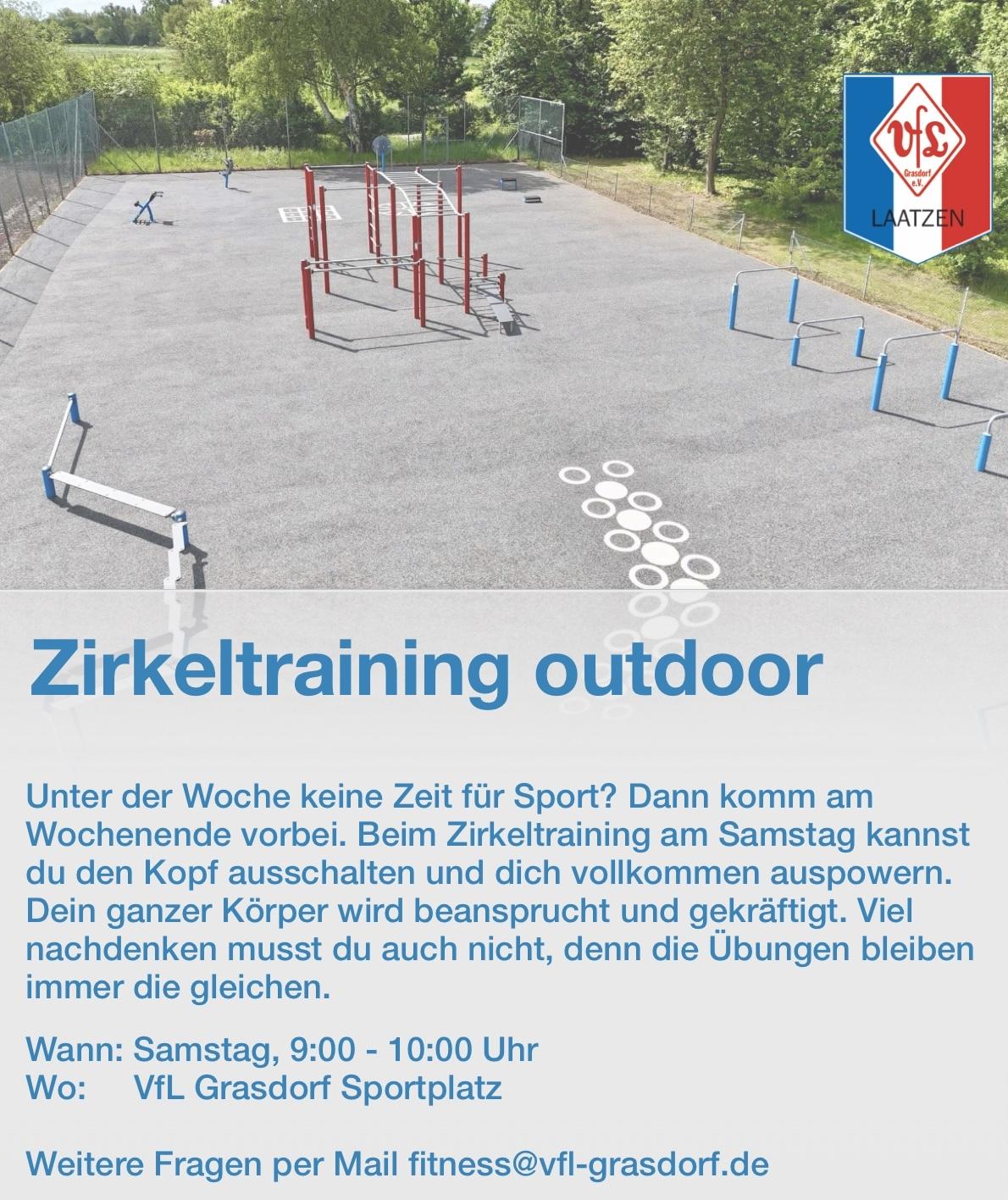 Infos Zusatzinformationen:Unter der Woche keine Zeit für Sport? Dann komm am Wochenende vorbei. Beim Zirkeltraining am Samstag kannst du den Kopf ausschalten und dich vollkommen auspowern. Dein ganzer Körper wird beansprucht und gekräftigt. Viel nachdenken musst du auch nicht, denn die Übungen bleiben immer die gleichen. Sportart:Fitness Alter:16 – 99 Jahre Ort VFL Grasdorf Vereinsheim Peterskamp 28 30880 Laatzen Deutschland Outdoor-Anlage VFL Vereinsheim Gymnastikraum Termine | Mittwoch | 19:00 – 20:00 | Turnhalle Ohestraße | | Samstag | 09:00 – 10:00 | VFL Grasdorf Vereinsheim |