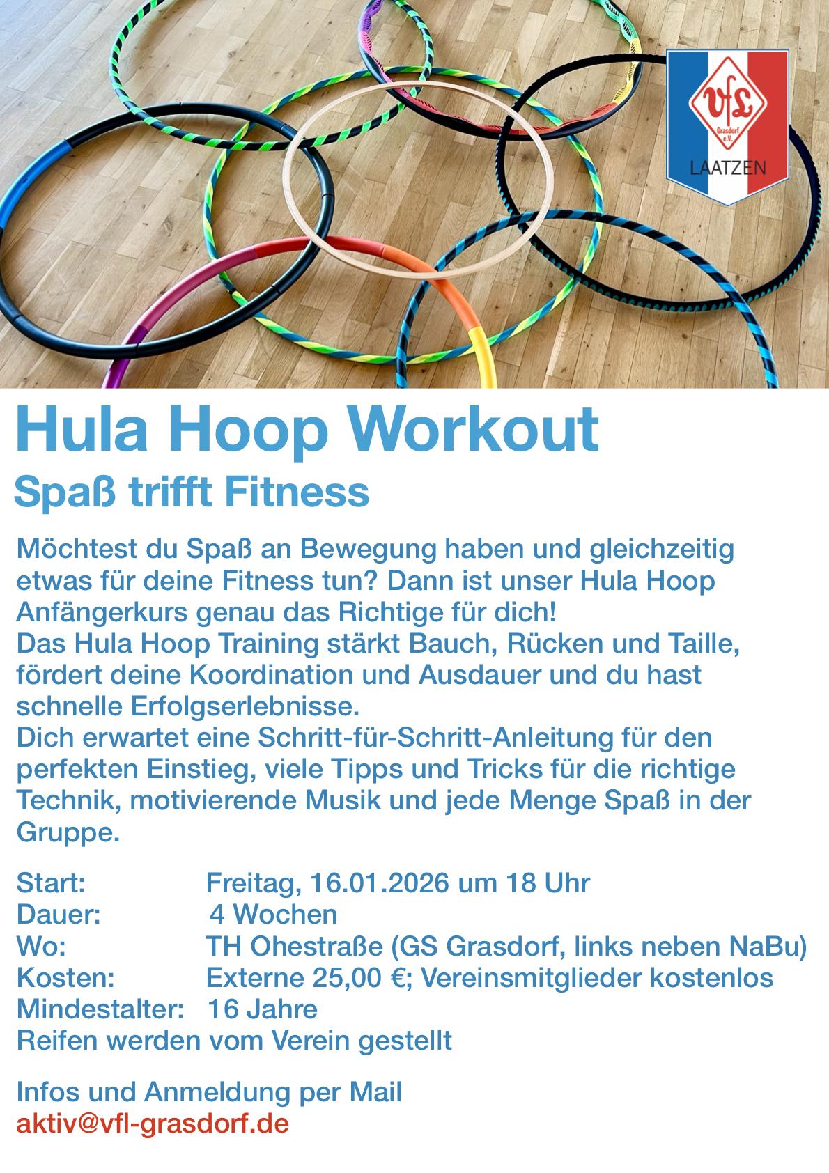Möchtest du Spaß an Bewegung haben und gleichzeitig etwas für deine Fitness tun? Dann ist unser Hula Hoop Anfängerkurs genau das Richtige für dich!