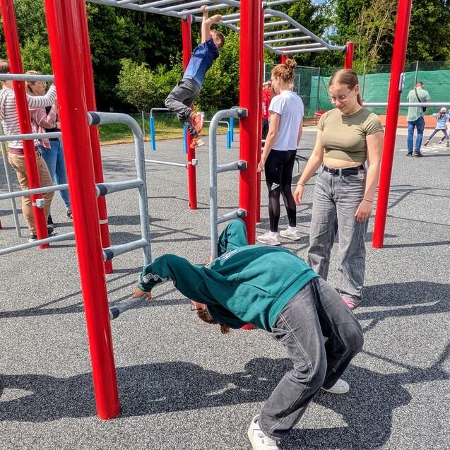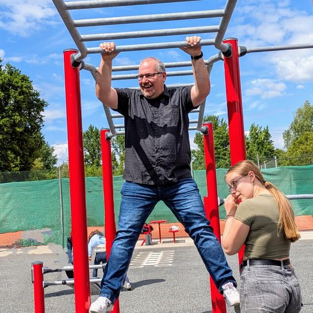 Der Outdoorplatz ist in direkter Nachbarschaft zu unseren gepflegten Tennisplätzen. Auf 650 m² bieten sieben Geräte der Firma Kompan unzählige Möglichkeiten für Bewegung und Spaß. QR-Codes an den Geräten führen zu Übungsvideos mit Vorschlägen, aber lasst eurer Kreativität gerne freien Lauf!
