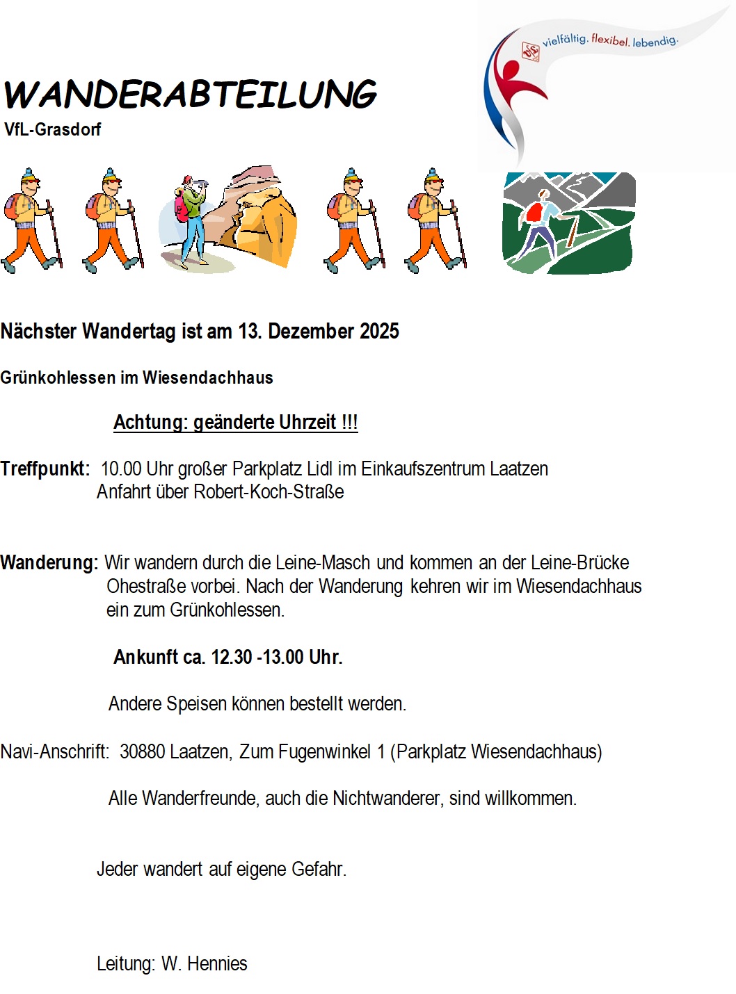 Nächster Wandertag ist am 13. Dezember 2025