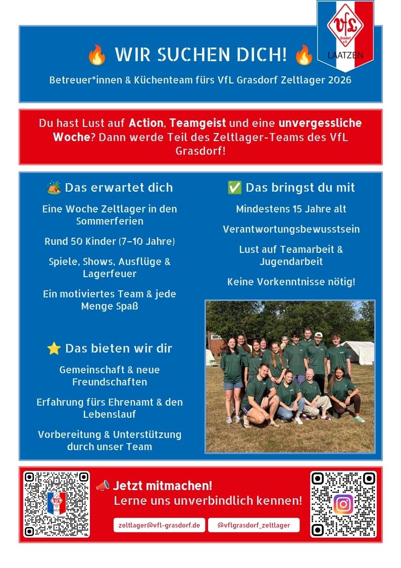 Abenteuer, Spiel und Spaß in der Natur! Unser jährliches Zeltlager für Kinder von 7 bis 10 Jahren bietet spannende Erlebnisse, sportliche Aktivitäten und kreative Ideen – betreut von einem ehrenamtlichen und engagierten Team.