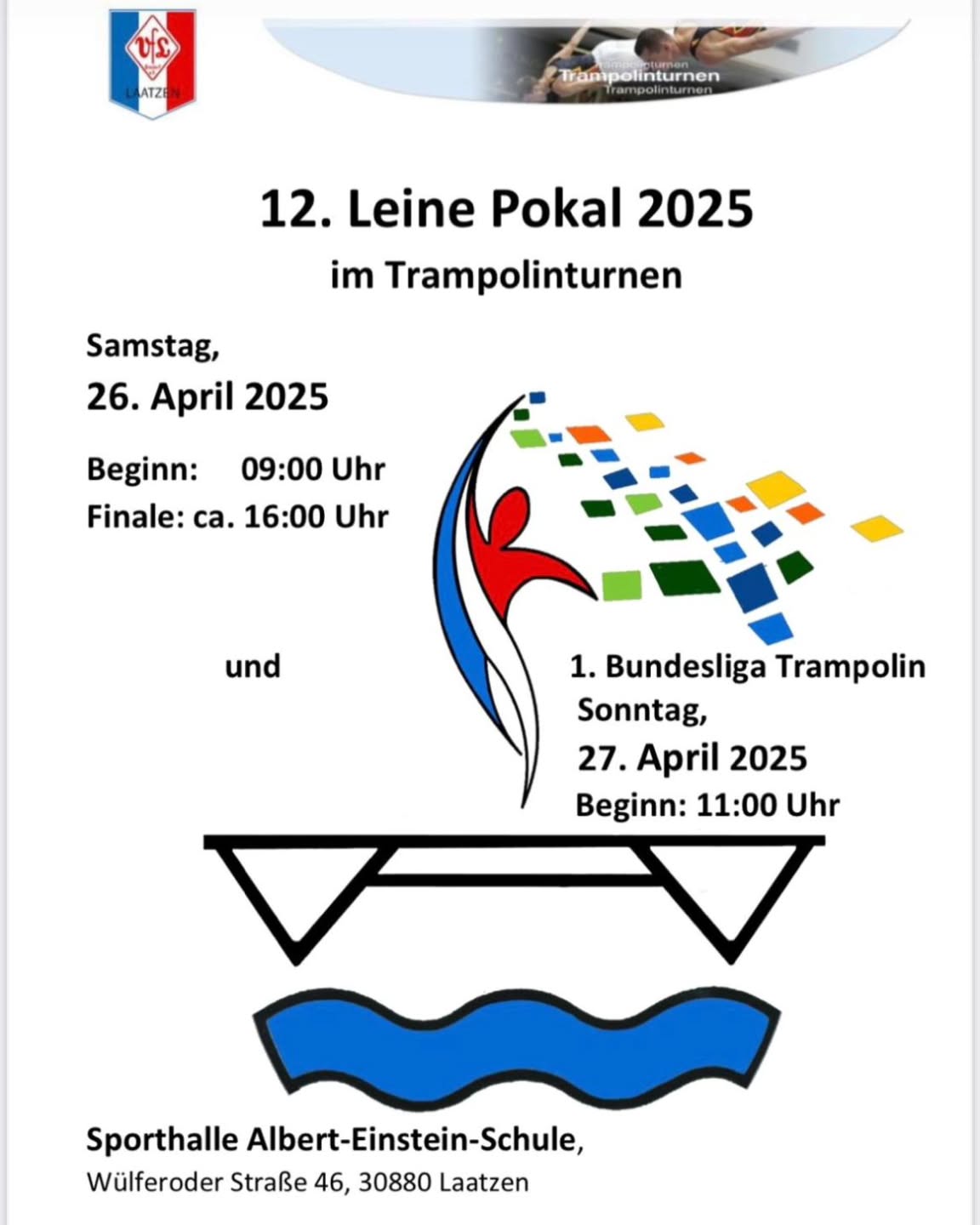 Es ist wieder soweit: Am 26. April verwandelt sich die Sporthalle des Schulzentrums der Albert-Einstein-Schule in eine Bühne für Eleganz, Kraft und Präzision – der 12. Leine Pokal im Trampolinspringen steht an. Über 200 Teilnehmerinnen und Teilnehmer aus ganz Deutschland reisen an, um in Laatzen mit atemberaubenden Sprüngen und anspruchsvollen Salti-Kombinationen ihr Können unter Beweis zu stellen.