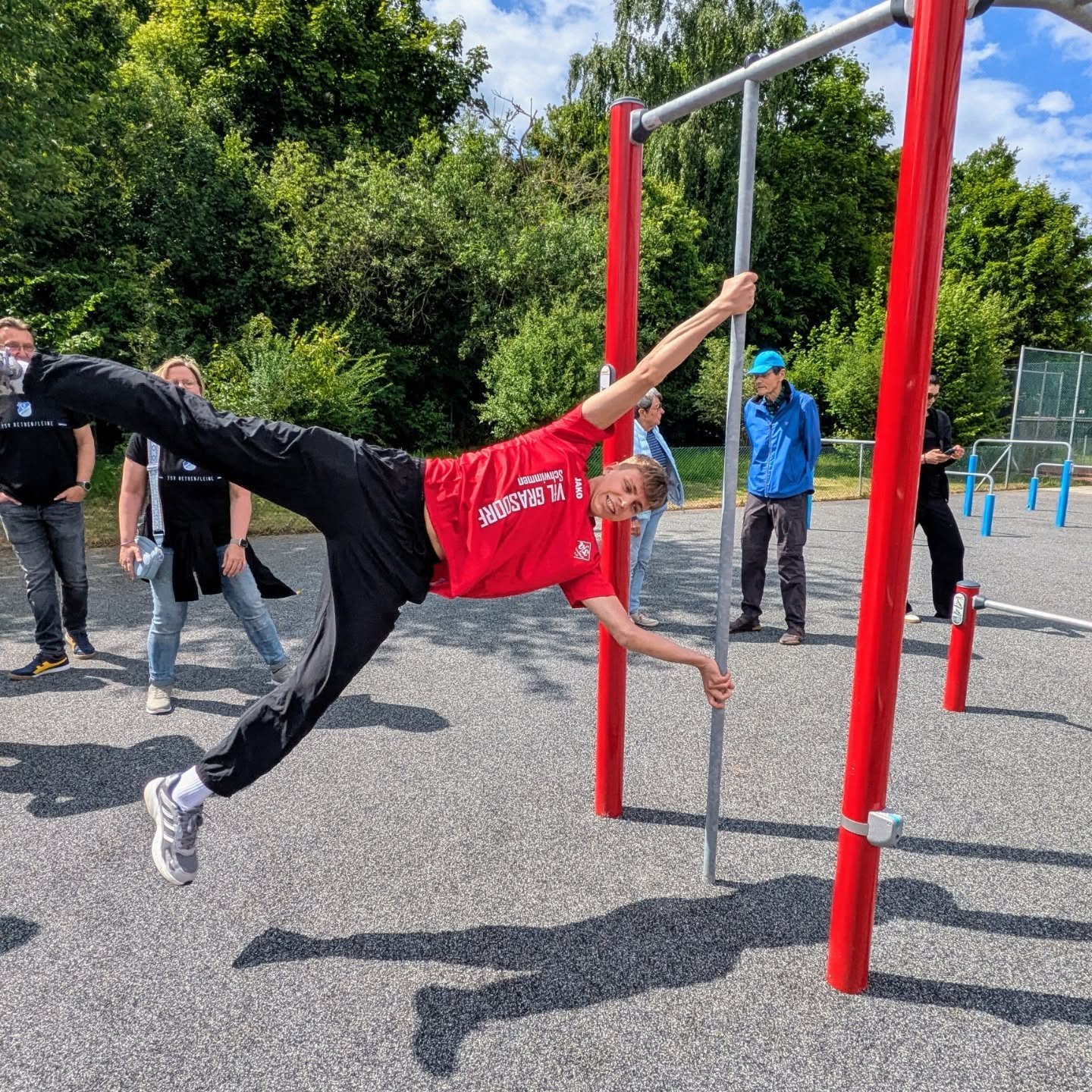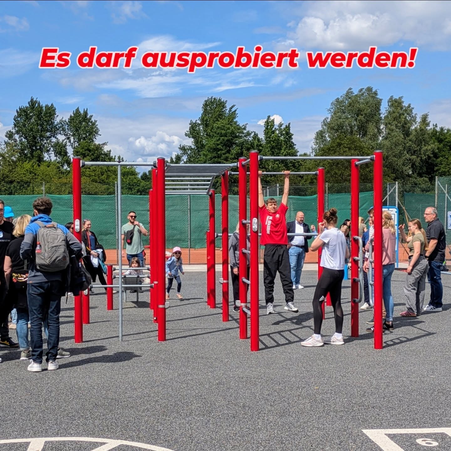 Gemeinsam mit Bürgermeister @eggert.kai und zahlreichen anderen Unterstützerinnen und Unterstützern konnten wir heute Danke sagen, das symbolische Band durchschneiden und die neue Anlage endlich ausprobieren! ✂️💐🏋🏼